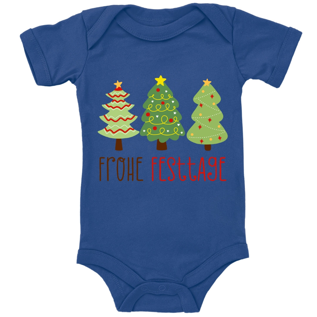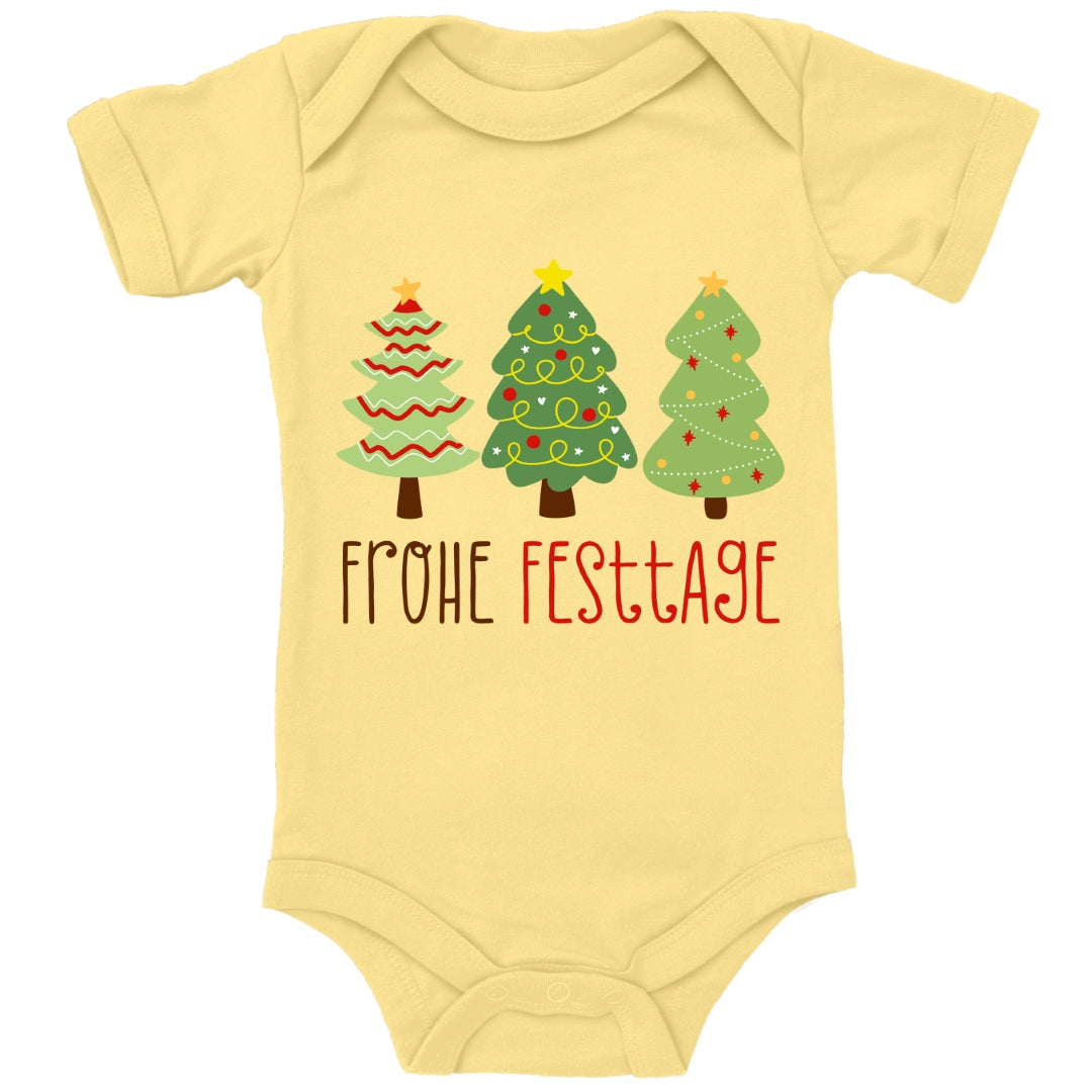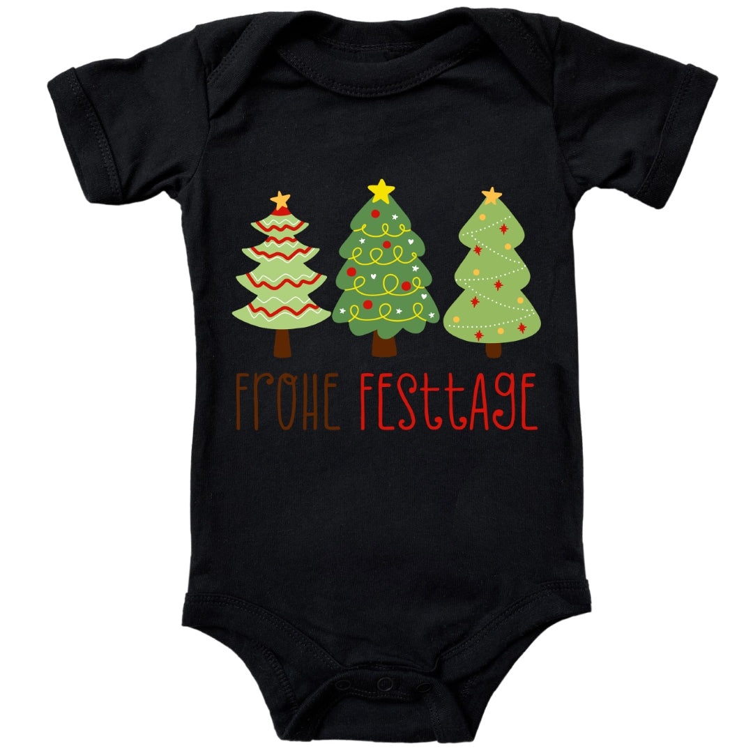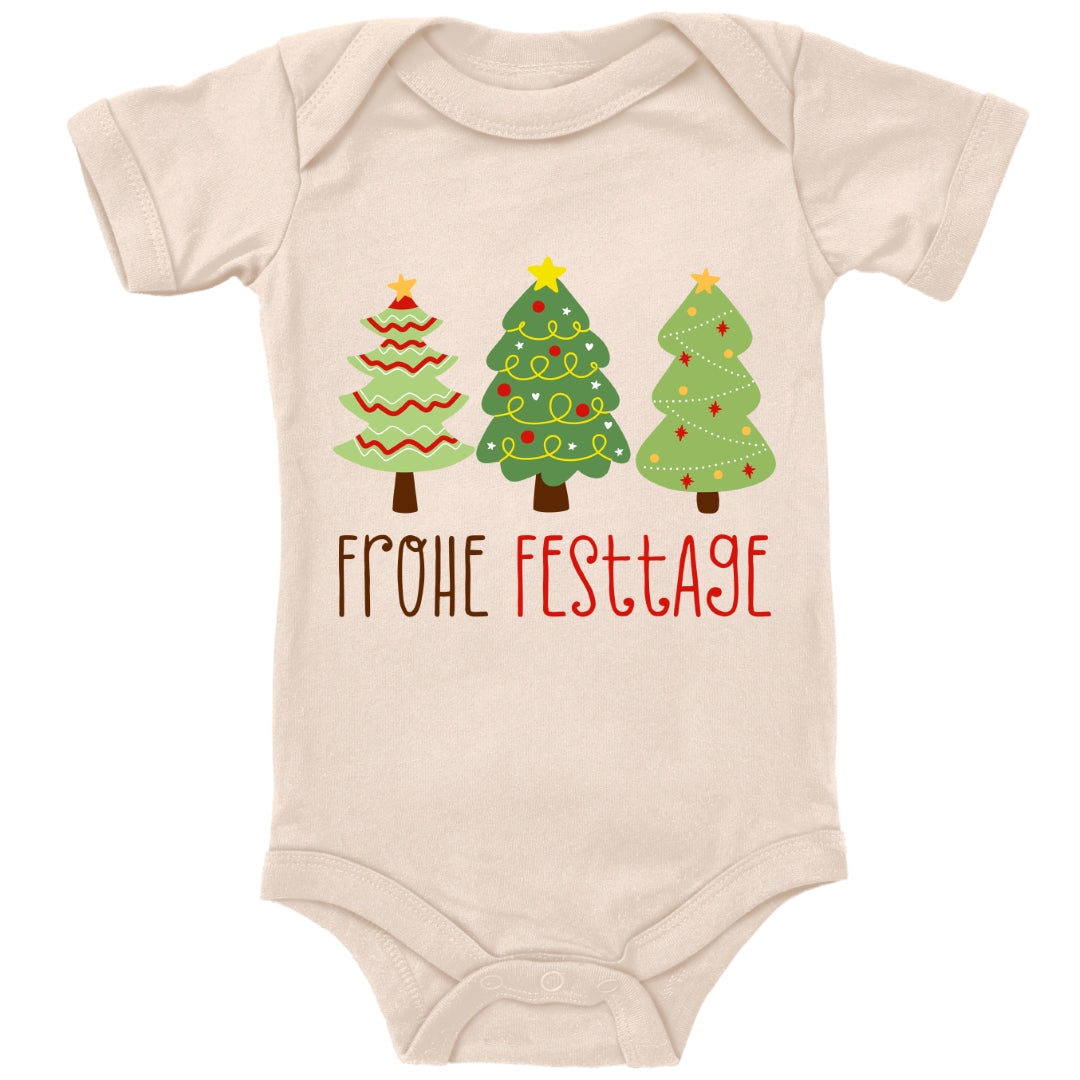 Geschmückte Tannenbäume wünschen Frohe Festtage