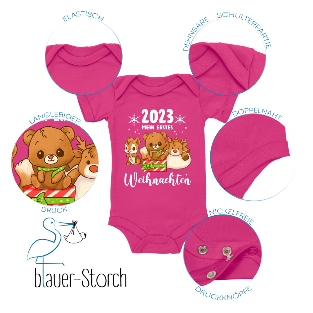 Mein erstes Weihnachten 2023, Rentier, Teddybär und Eichhörnchen feiern Weihnachten